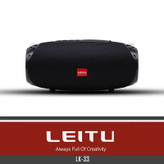 اسپیکر بلوتوثی قابل حمل LK-33 شرکت لیتو از سری اسپیکرهایی است که قابلیت اتصال هم به صورت بی سیم و هم از طریق سیم را دارد. ابعاد این اسپیکر 10x10x23سانتی متر بوده و میتوان آن را با خود در کیف برای سفرها و پیکنیک ها به همراه برد و استفاده کرد. همچنین این اسپیکر برای حمل راحت تر دارای بند دوشی بوده و وزنی در حدود 590 گرم دارد. فرکانس پاسخگویی در این مدل لیتو 50 هرتز تا 20 هزار هرتز است. منبع انرژی این اسپیکر باتری است ظرفیت باتری آن 1200 میلی آمپر ساعت خواهد بود. اسپیکر LEITU LK-33 دارای شیار اتصال کارت حافظه و درگاه AUX است و همچنین قابلیت اتصال از طریق USB را نیز دارد. دکمه کم و زیاد کردن صدا نیز روی اسپیکر تعبیه شده است که به راحتی در دسترس باشد. این اسپیکر دارای قابلیت اتصال همزمان به اسپیکرهای دیگر(TWS) است و همچنین دارای گواهی ضدآب IPX4 می باشد. این اسپیکر مجهز به دو عدد ساب ووفر بوده که باعث قدرت و کیفیت صدای بهتر میشود. اقلام همراه این دستگاه کابل شارژ MICRO USB ،یک عدد کابل AUX و بند دوشی است.