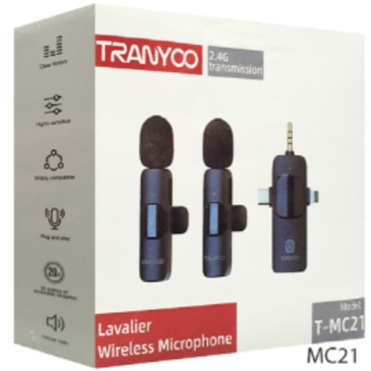 میکروفون یقه ای حرفه ای MC21 از برند ترانیو یک انتخاب عالی برای افرادی است که به دنبال کیفیت صدای برتر و قابلیت های بی نظیر هستند. میکروفون MC21 ترانیو با ویژگی های متعددی که دارد، می تواند نیازهای کاربران حرفه ای و علاقه مندان به ضبط صدا را به خوبی برآورده کند. اتصال وایرلس: میکروفون Tranyoo MC21 از تکنولوژی بی سیم بهره می برد که به کاربر امکان می دهد بدون نیاز به کابل های مزاحم، به راحتی از آن استفاده کند. این ویژگی به خصوص برای افرادی که در حال حرکت هستند یا در محیط های پویا کار می کنند، بسیار مفید است. قابلیت اتصال لایتنینگ آیفون ، تایپ سی و جک 3.5: میکروفن ترانیو MC21 قابلیت اتصال به انواع دستگاه ها را دارد. با استفاده از پورت های Type C و Lightning و AUX شما می توانید این میکروفون را به گوشی های هوشمند، تبلت ها، لپ تاپ ها و سایر دستگاه های صوتی متصل کنید. یکی از ویژگی های برجسته این میکروفون، قابلیت کاهش نویز و تقویت صدا است. این ویژگی باعث می شود که صدای ضبط شده حتی در محیط های پر سر و صدا با وضوح و شفافیت بالا باشد. میکروفون یقه ای بی سیم ترانیو MC21 دارای دو میکروفون است که به شما امکان می دهد به صورت همزمان از هر دو استفاده کنید.این ویژگی برای مصاحبه ها ، پادکست ها و سایر فعالیت های چند نفره بسیار کاربردی است. باتری قدرتمند و نگهداری طولانی: باتری میکروفن ترانیو MC21 با ظرفیت باتری خود می تواند بین 6 تا 8 ساعت به طور مداوم کار کند. این زمان کاری طولانی امکان استفاده از میکروفون در طول روز را بدون نیاز به شارژ مجدد فراهم می کند.
