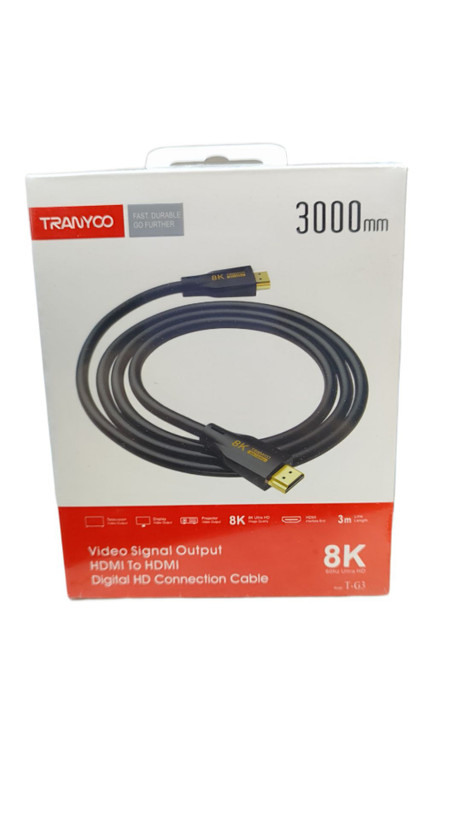 کابل تبدیل HDMI ترانیو مدل G3 مدل 8K جزء اولین کابل های وارداتی با ورژن 2.1 با کیفیت 8K است که قابلیت های ویژه و منحصر به فردی همچون پشتیبانی از تکنولوژی 8K 60Hz FUHD و 4K 120Hz و eARC و Speed 48Gbps و Dynamic HDR و Dolby Vision رزولیشن 4320×7680 می باشد. برای دریافت بهترین کیفیت تصویر ما این کابل را برای تلوزیون عریض 65 به بالا توصیه می کنیم.