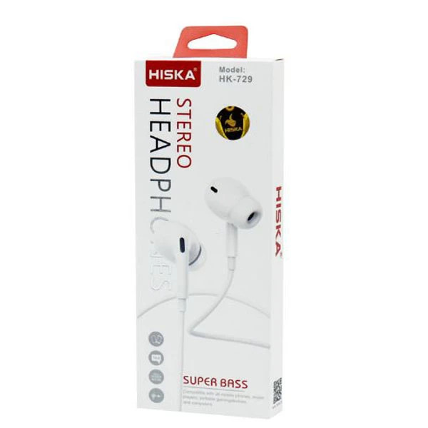 هندزفری Hiska HK-729 هندزفری سیمی هیسکا مدل HK729 اتصال با سیم از طریق رابط جک ۳٫۵ میلی متری صدا و کابل به طول ۱۲۰ سانتی متر با روکش TPE کلید های فیزیکی به منظور مدیریت موسیقی، میزان صدا و مکالمه میکروفن داخلی HD به منظور مکالمه با کیفیت