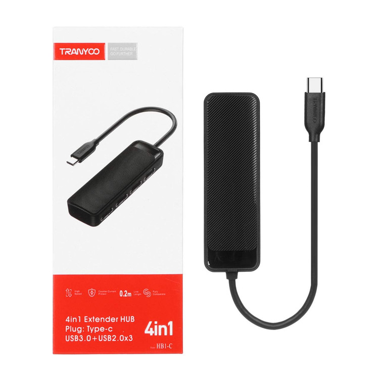 هاب 4 پورت ترانیو دارای یک درگاه USB3.0 و 3 درگاه USB2.0 می باشد. این هاب از طریق پورت Type-C امکان اتصال به لبتاب یا گوشی شما رو فراهم می نماید.