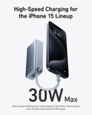 شارژ سریع 30 واتی: با استفاده از کابل USB-C 30 واتی، شارژ و شارژ سریع 30 واتی را دریافت کنید. پاوربانک را تنها در 45 دقیقه تا 50 درصد شارژ کنید یا آیفون 14 را در 30 دقیقه تا 50 درصد شارژ کنید.