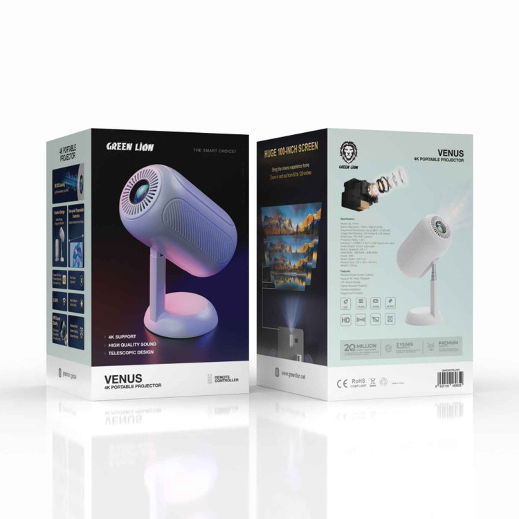 پروژکتور VENUS با رزلوشن 3840*2160 (4K)، تصاویری با وضوح و جزئیات بالا را به کاربران ارائه میدهد. این ویژگی باعث میشود تماشای فیلمها، ارائههای تجاری و محتواهای مختلف با کیفیتی بینظیر و واقعیتر از همیشه باشد.