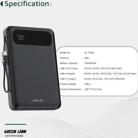 پاوربانک گرین لاین مدل Toledo ظرفیت 10000 میلی آمپر ساعت (تک/عمده)